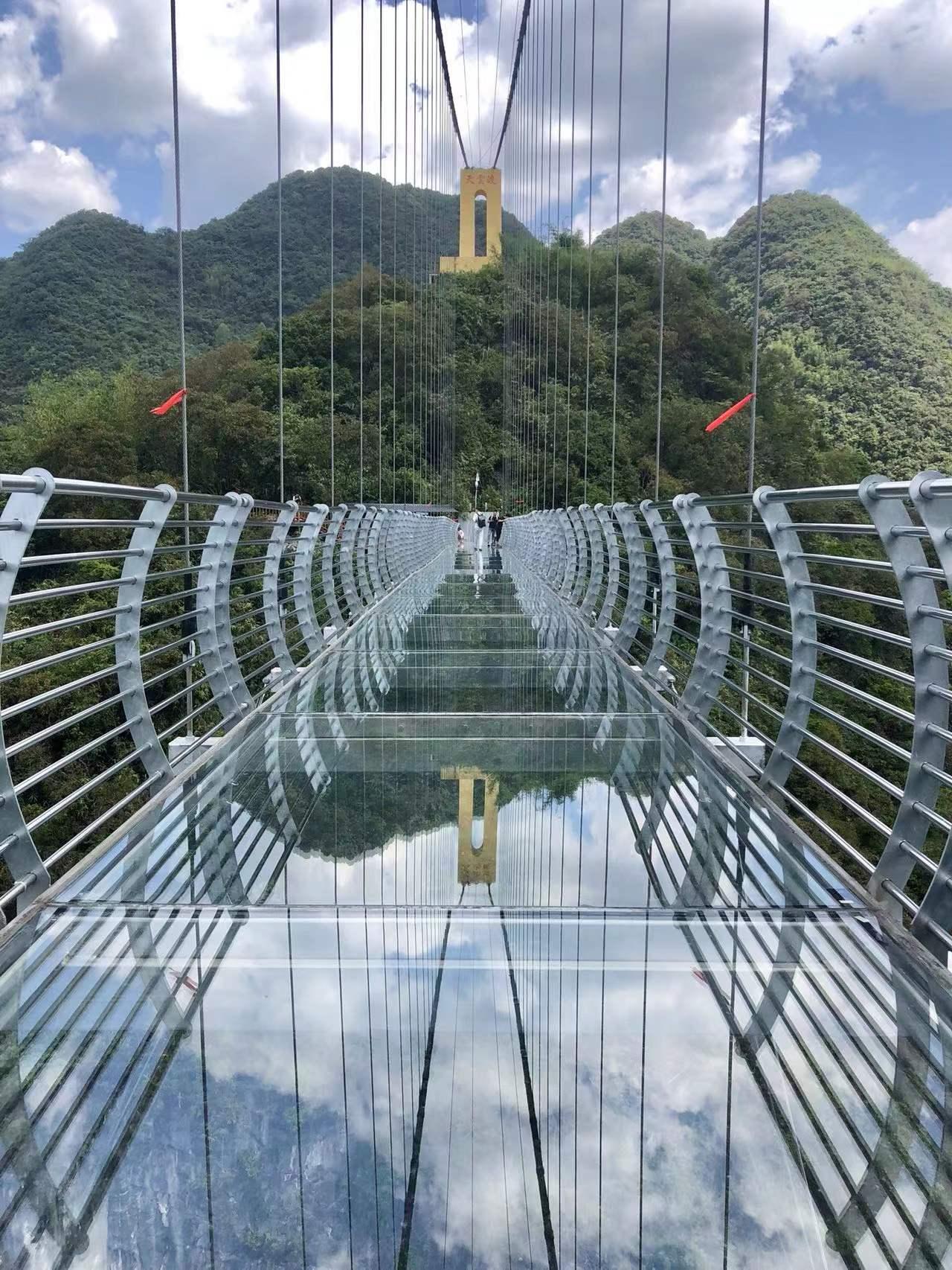 3、环保理念的体现:相较于传统桥梁,玻璃桥的建设对自然环境的影响较小,其透明设计可以更好地展示自然美景,体现了环保理念。